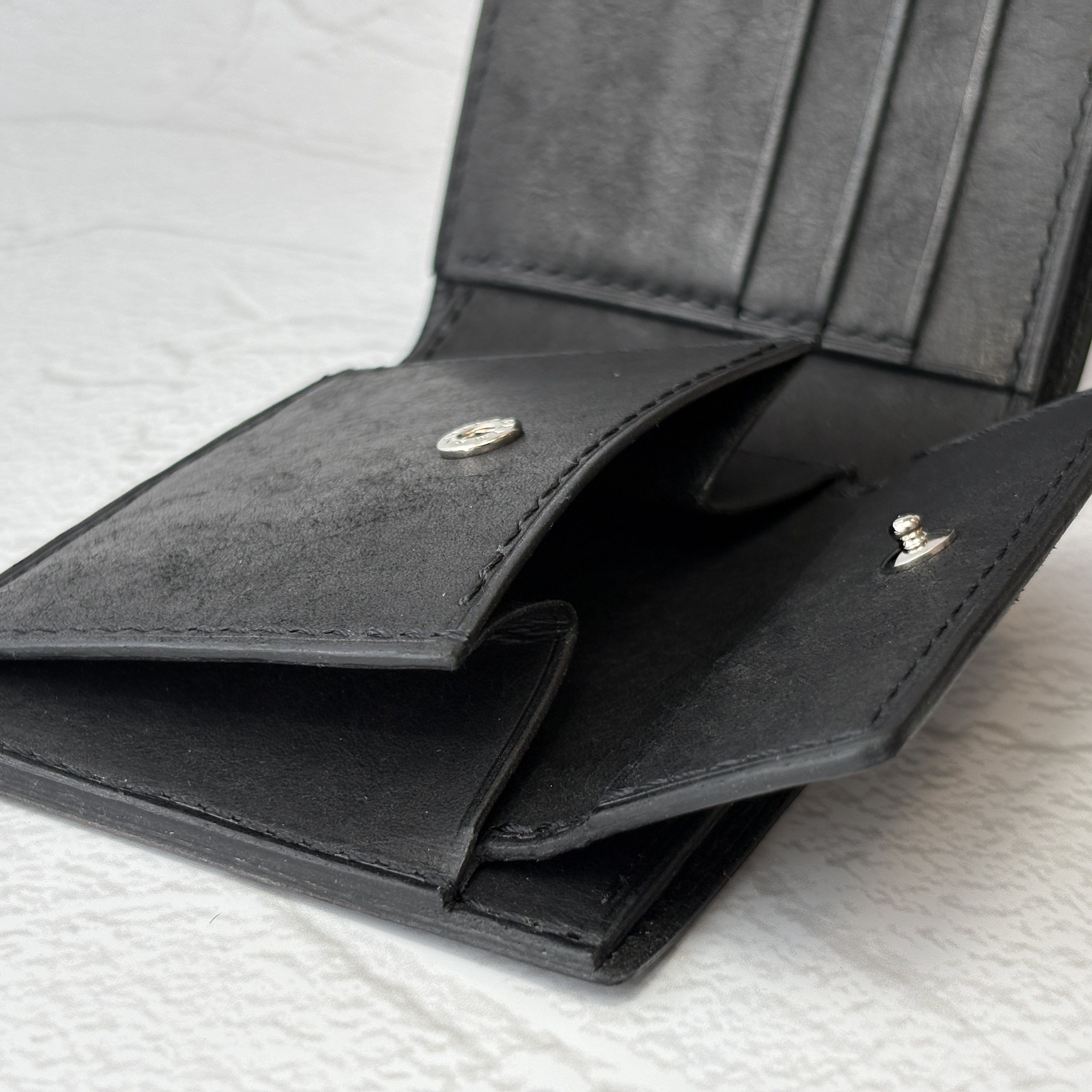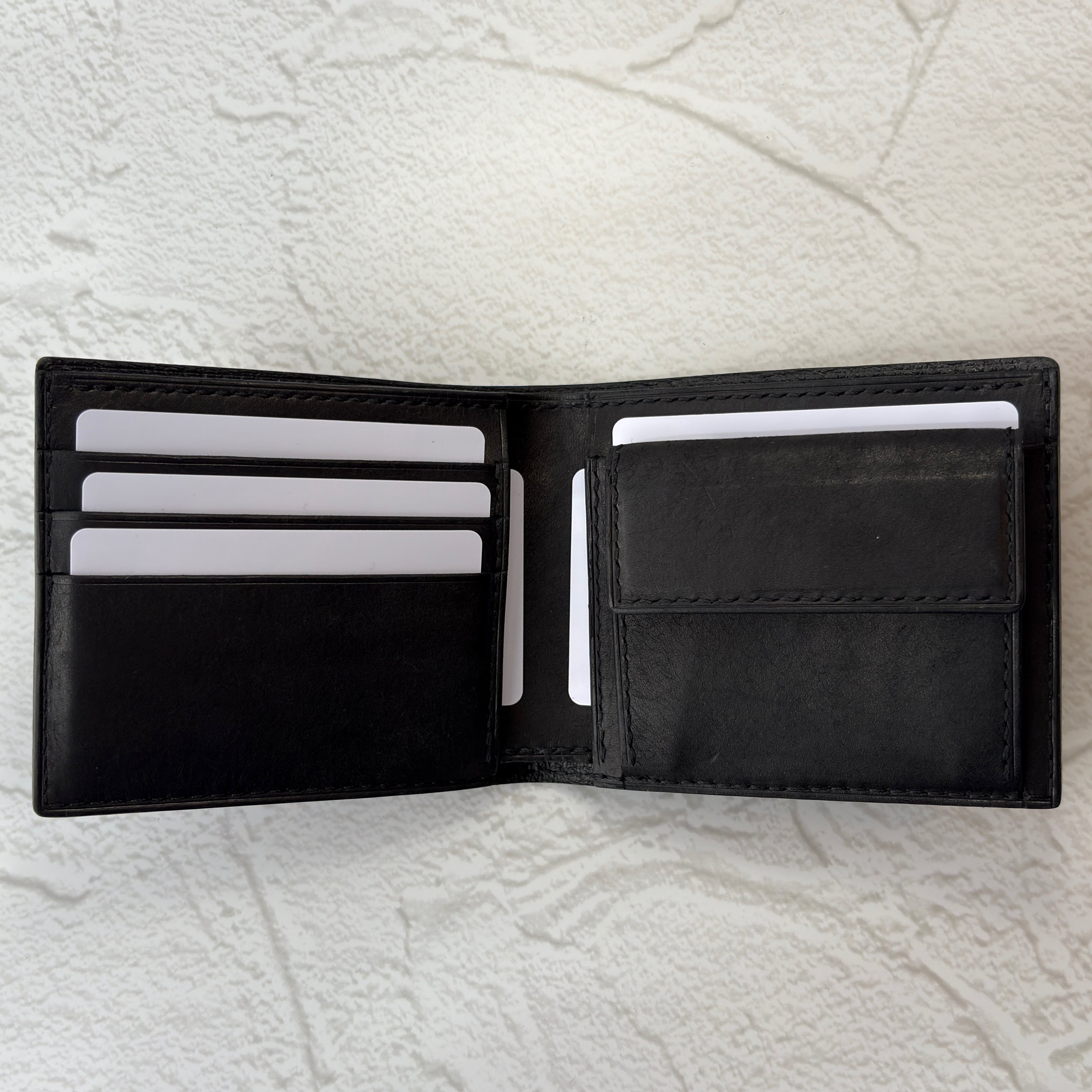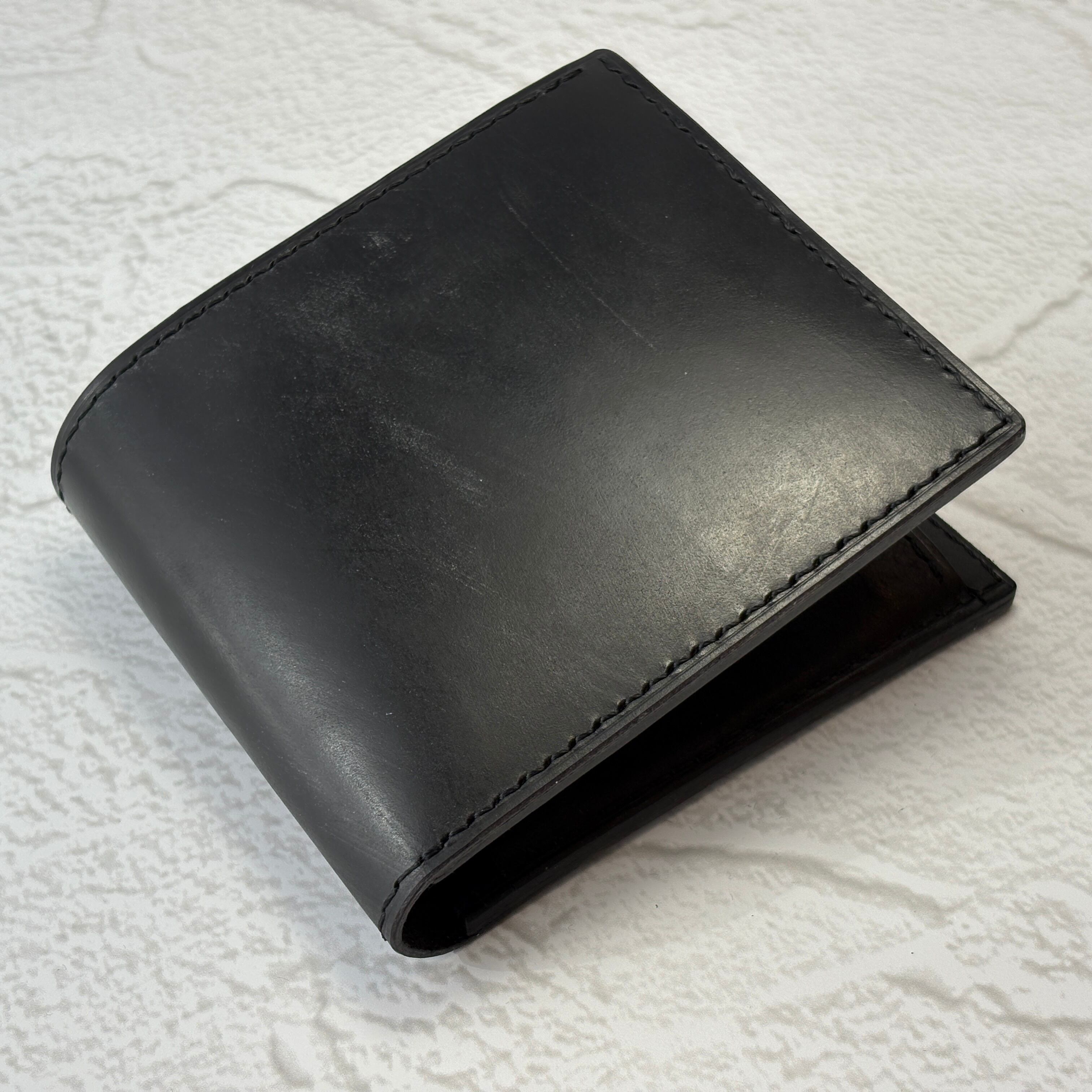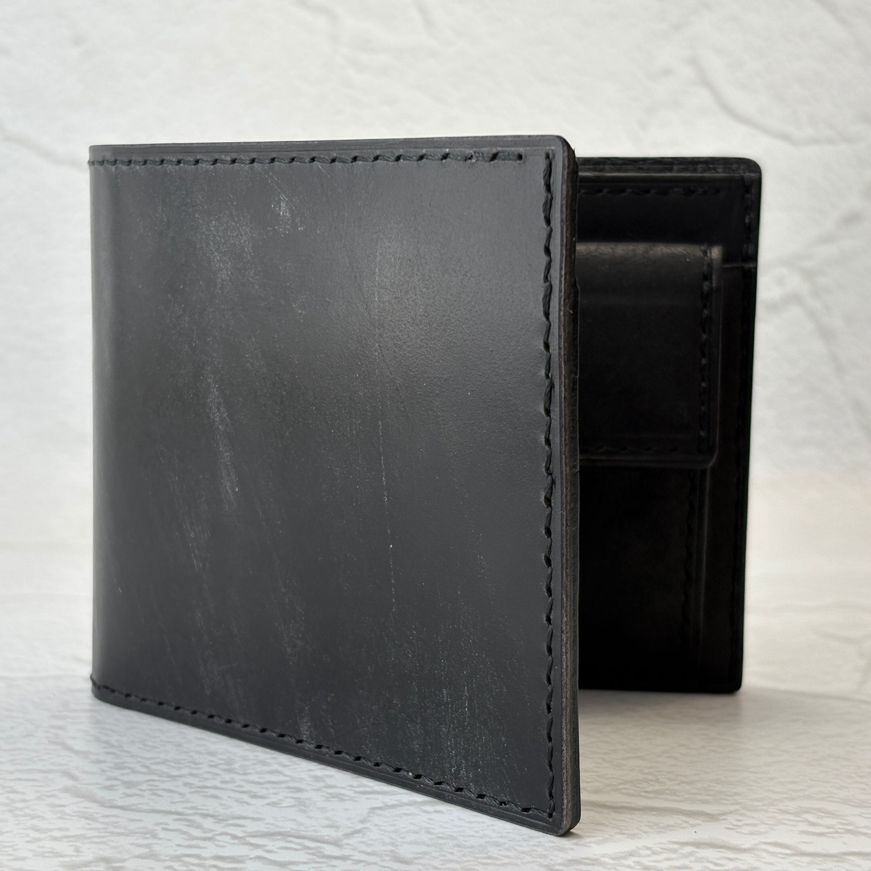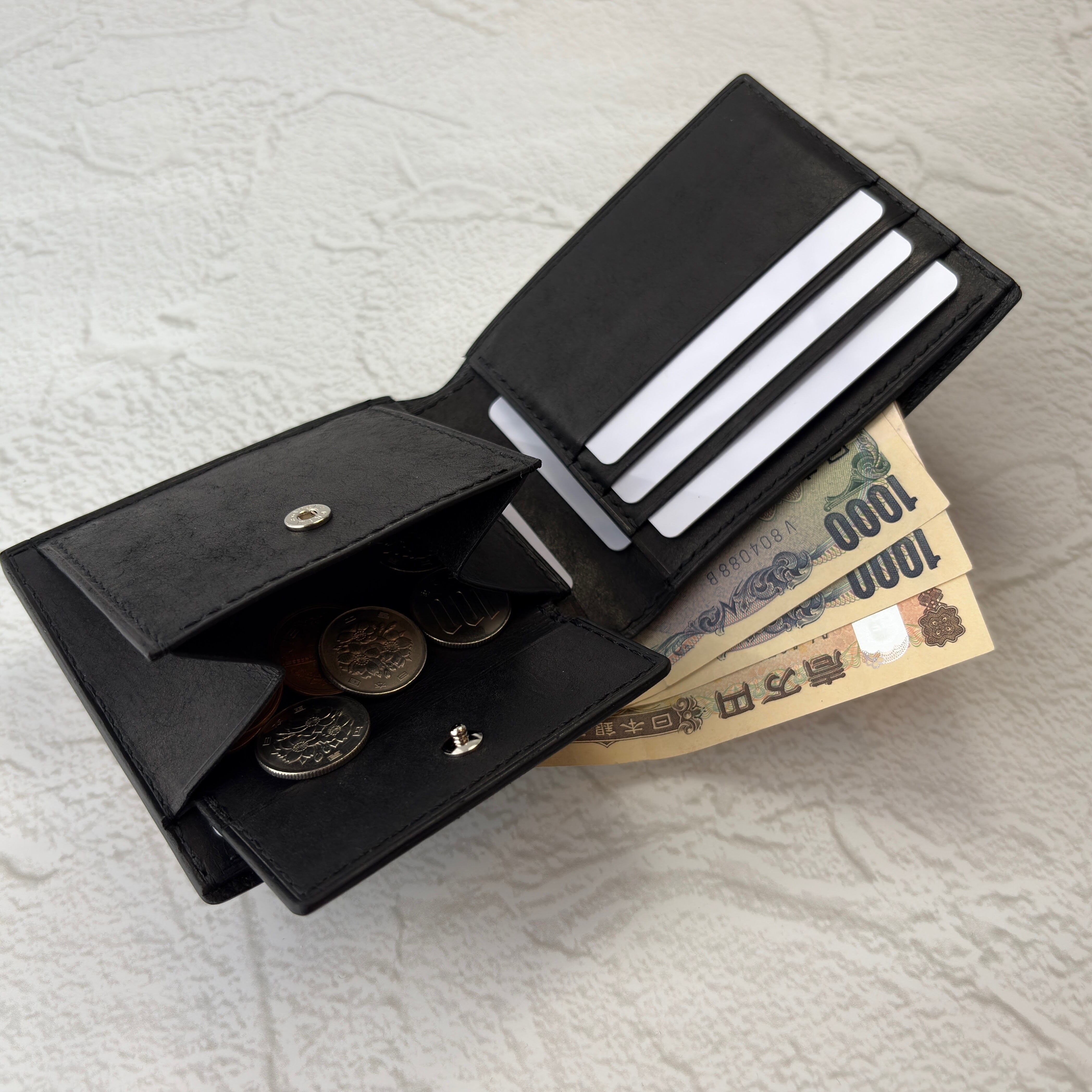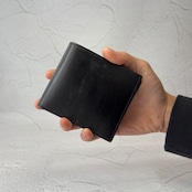ブライドルレザー 二つ折り財布(小銭入れ付)オールレザー・オールブラック仕様